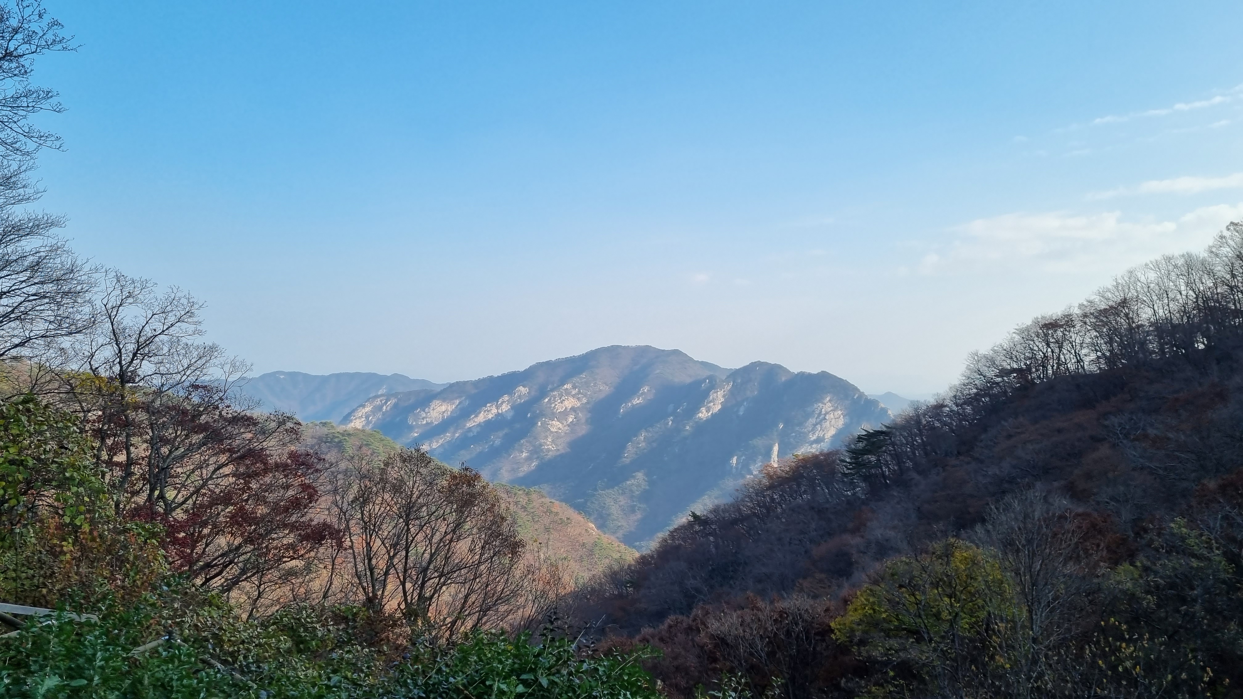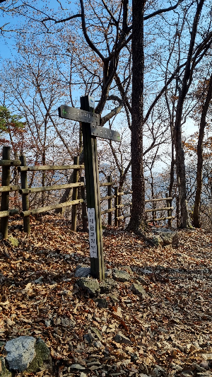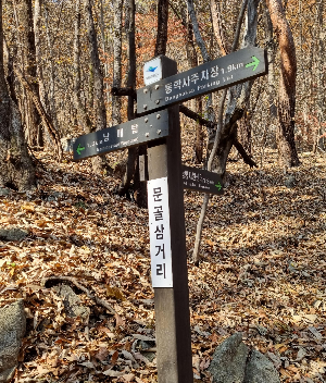문골삼거리 도착. 입구에서 큰배제 까지 낙엽이 쌓여서 길이 헷갈리는 구간이 좀 있었다. 왼쪽 계곡과 나무에 붙은 표식을 찾아가며 확인했고, 가끔은 반대로 내려오는 분들을 이정표로 삼았다.