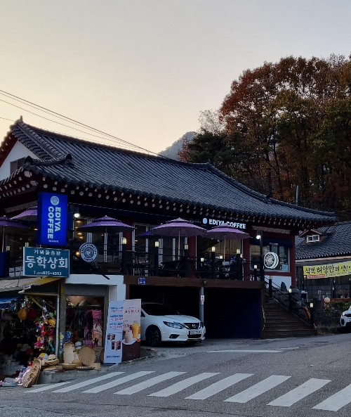 지나다 보면 한옥 모양의 커피집이나 편의점도 있다.