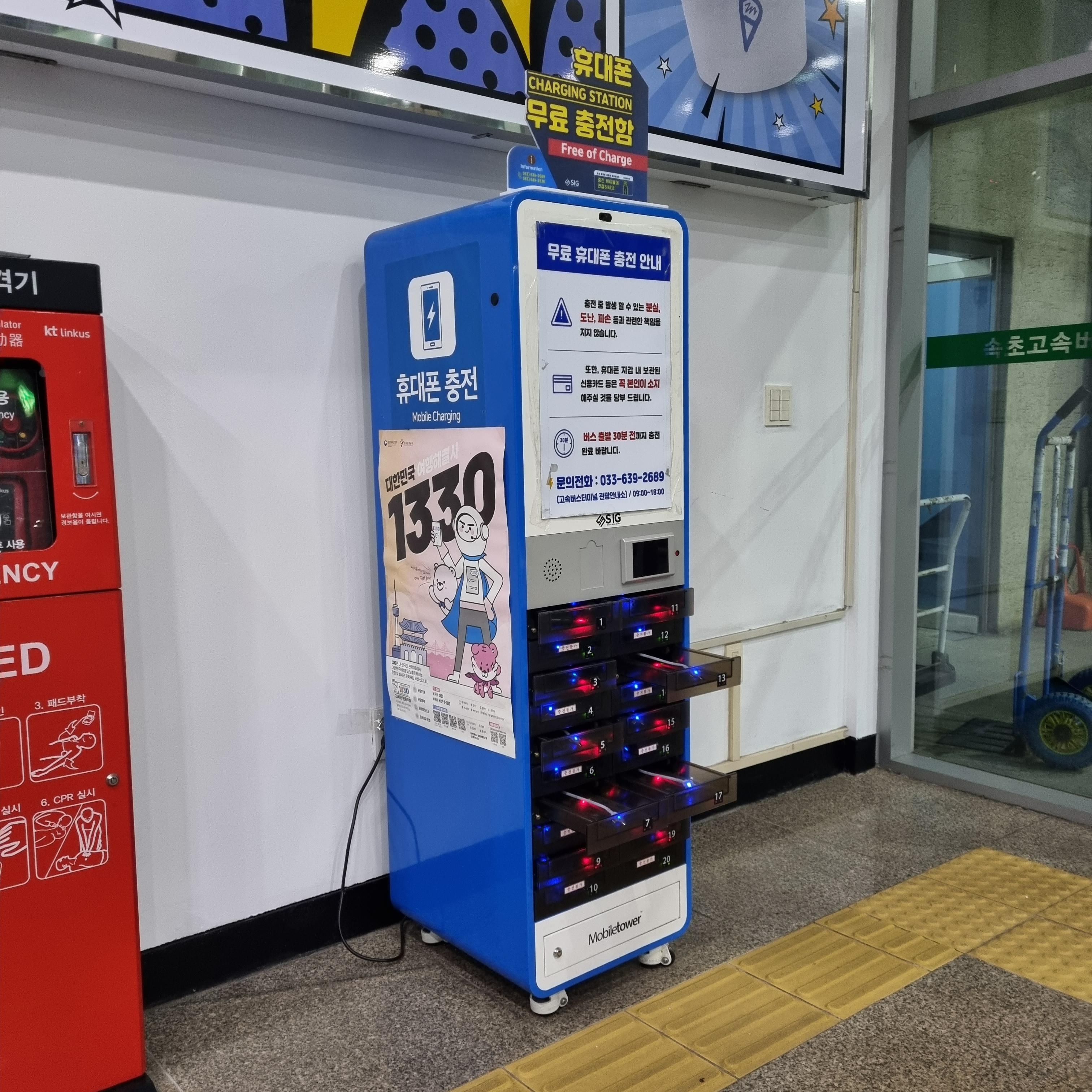산에서 내려와서 저녁을 먹고, 휴대폰을 충전해야 했는데 속초고속터미널에 이런게 있었다. 잠금장치는 없으나 대합실 의자 바로 옆이라 감시 중.