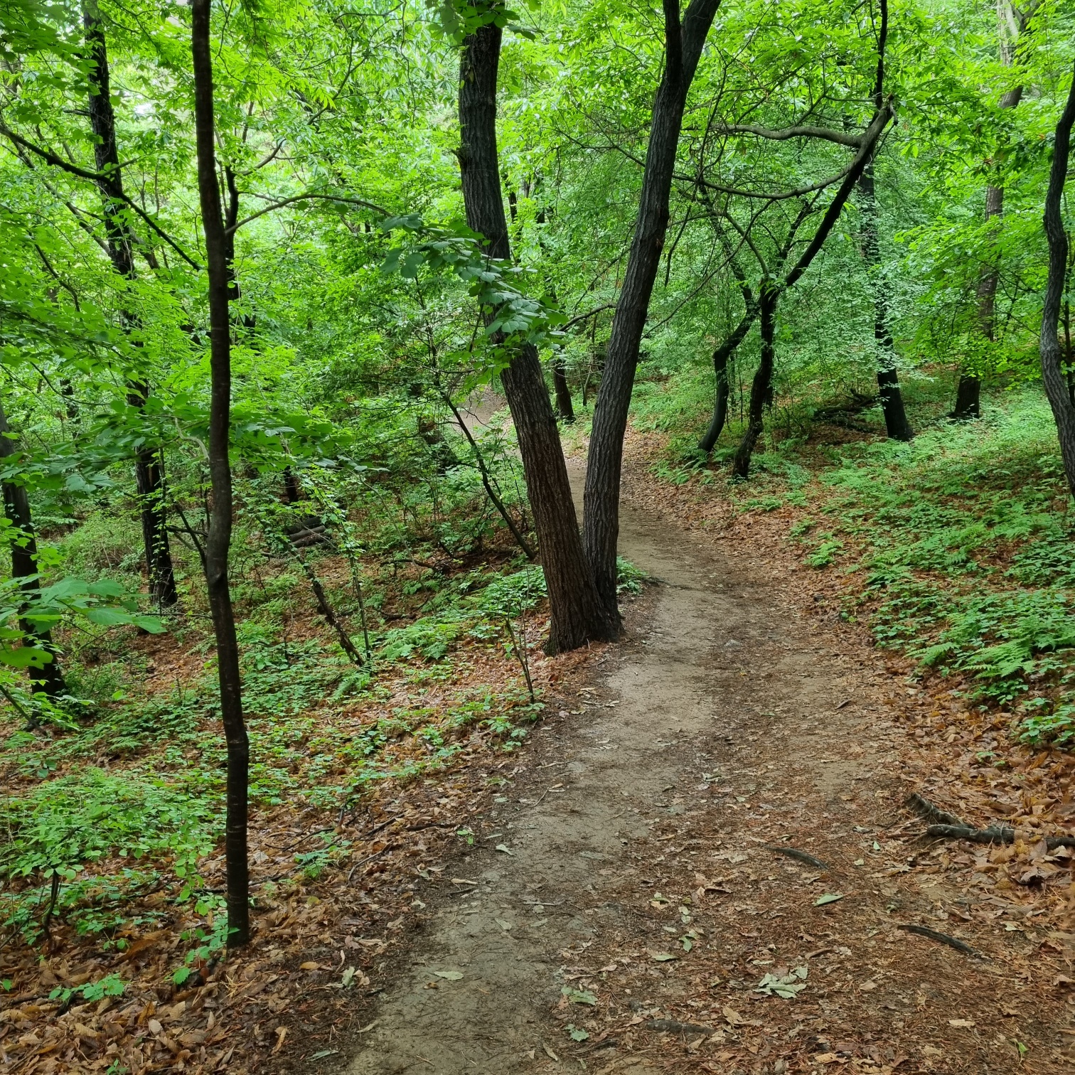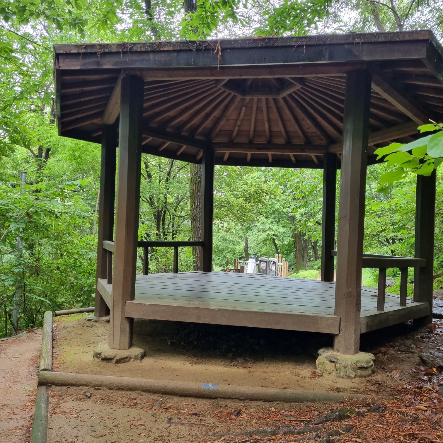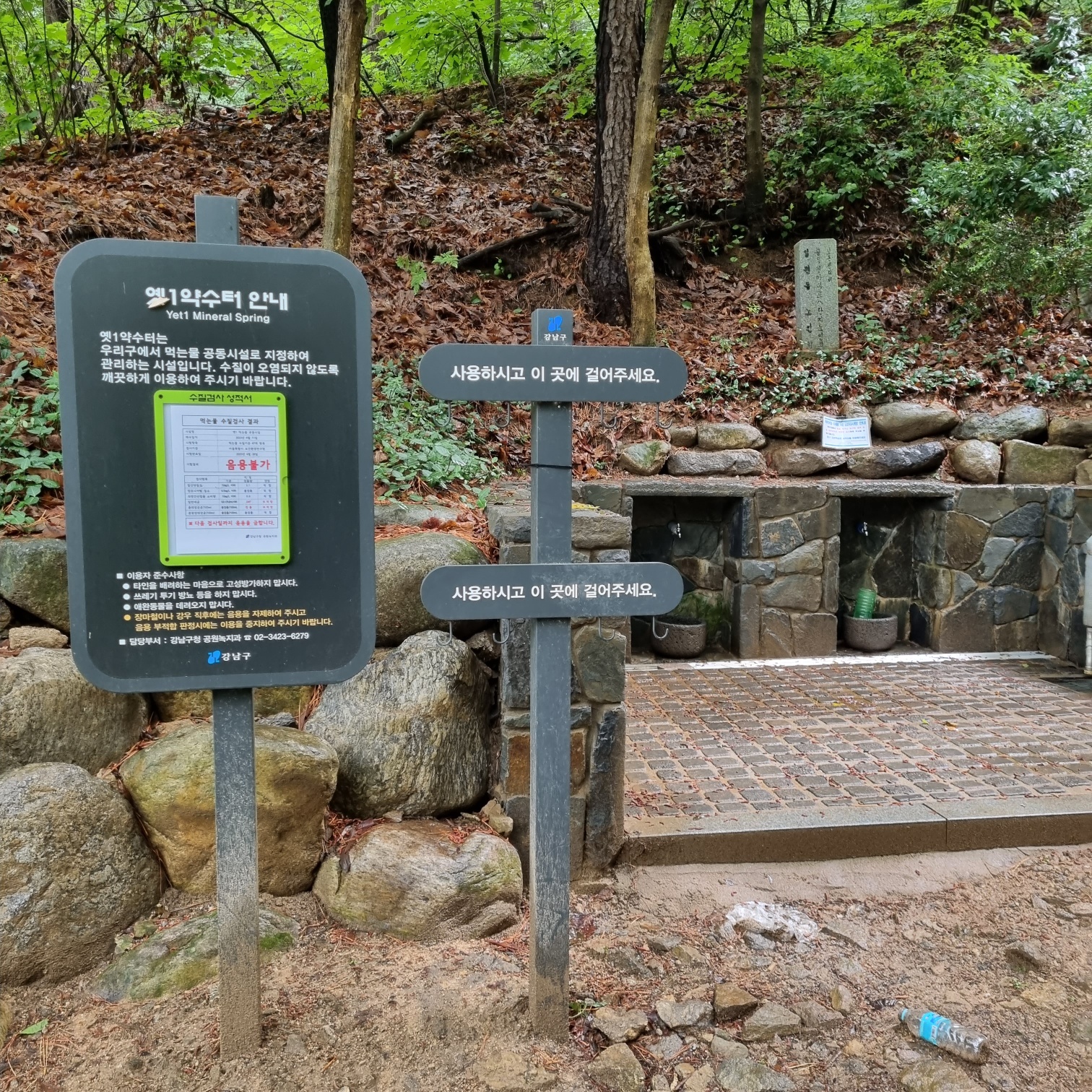 비가그친 오후, 덥고 습하다. 한솔아파트 입구에서 출발. 무장애탐방로를 따라가다 약수터 쪽으로 빠짐. 어라, 여기 적합이네. 근데 바로위 약수터는 부적합...