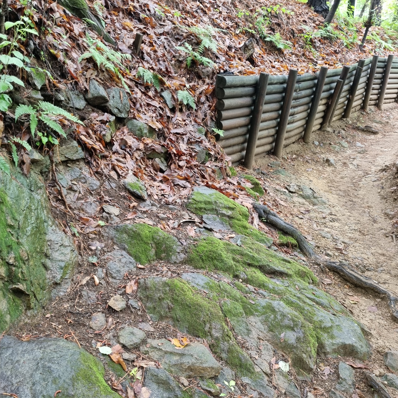 약수터 옆 정자도 구겨하고, 다시 유아숲 체험장 방향으로. 북쪽면이라 그런지 이끼가 많다.