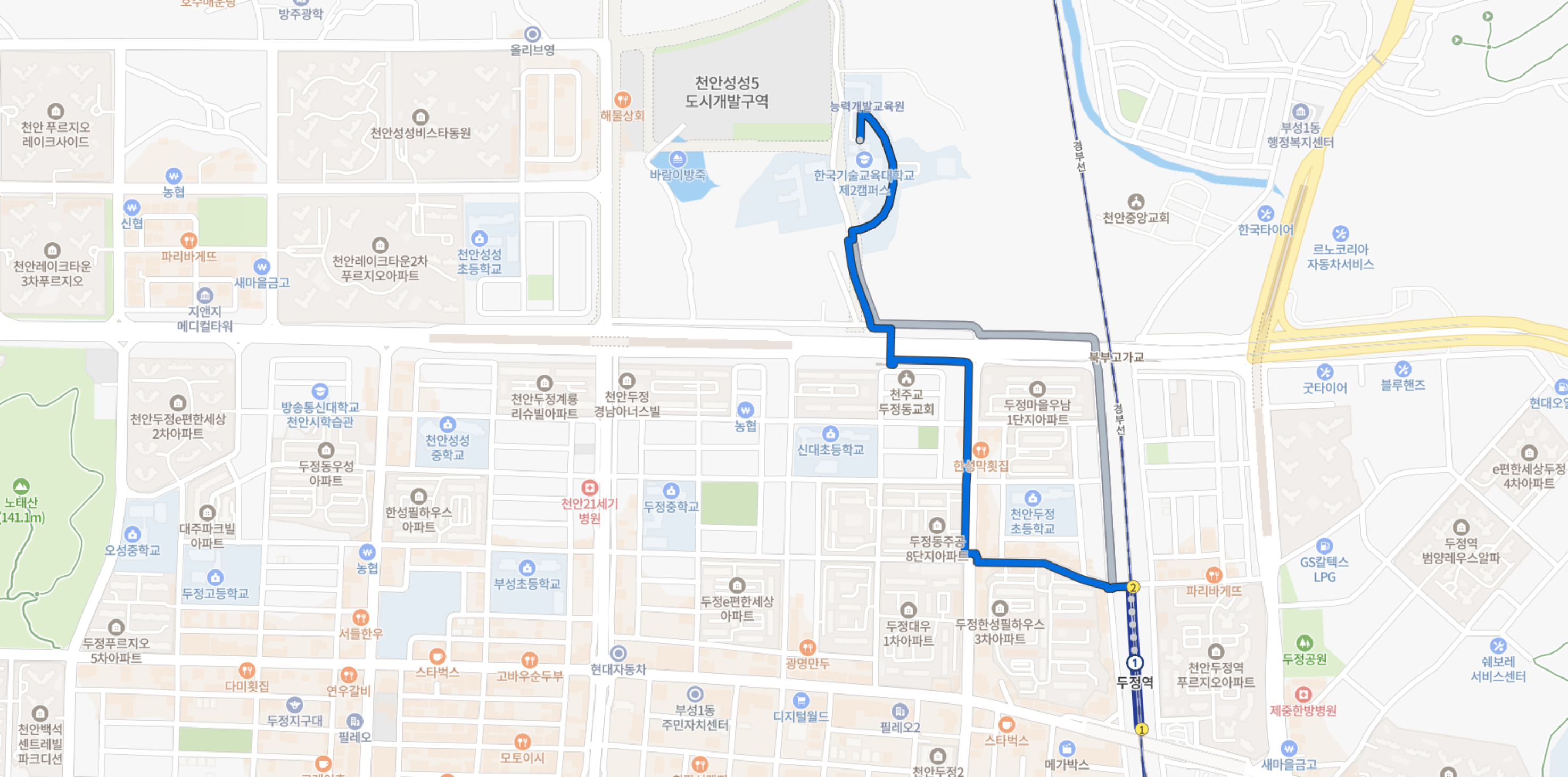 도보 이동시 네이버 지도의 최단거리 대신 큰길 우선을 택하는 것이 좋다. 고가도로 아래를 건너는 최단거리는 좀 험난해보인다.